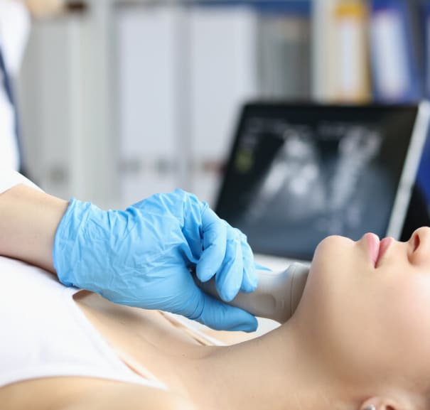 A lymph node ultrasound is a painless, non-invasive scan that uses sound waves to create images of the lymph nodes in your body. It allows your doctor to look at the size, shape, and structure of your lymph nodes without using any radiation.