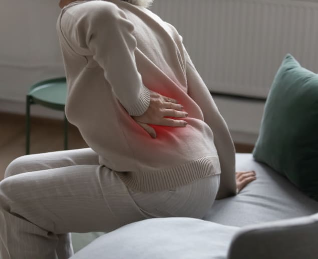 Sciatica (a nerve injury characterised by burning pain that radiates from the buttocks down to the legs or feet).